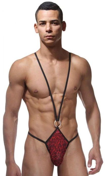 Мужское боди на лямках с открытыми ягодицами и украшением в виде колечка на пупке. Отлично подойдет тем, кто не стесняется своего тела и любит эксперименты в интимной жизни. Боди выполнено из эластичной ткани, с хищной расцветкой, поэтому оно хорошо сядет на любой тип фигуры и не будет создавать дискомфорт.