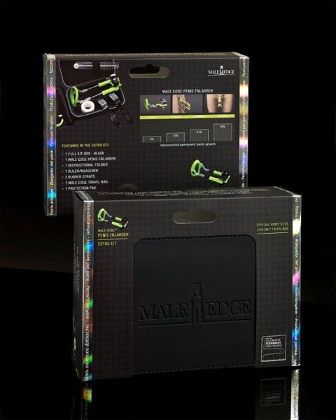 Для увеличения пениса необязательно ложиться под нож. Ему есть безопасная и абсолютно безболезненная альтернатива - Male Edge Extra. При регулярном и правильном использовании запатентованный прибор родом из Дании способен увеличить половой член до необходимых размеров. Высокая эффективность экстендера подтверждена клиническими испытаниями. Как это работает? Принцип кроется в растяжении пениса: при длительном натяжении тканей в них образуются новые клетки. Всё это приводит к увеличению предмета мужской гордости в объёме и длине. По сравнению с другими экстендерами Male Edge Extra имеет ряд преимуществ. В первую очередь, малый вес – всего 65 грамм. Добиться этого удалось за счёт применения высокопрочного пластика вместо тяжёлого металла. Этот материал абсолютно безопасен для здоровья – не вызывает аллергических реакций и раздражения на коже. Ко всему прочему, прибор ещё и приятен на ощупь. Для надевания Male Edge не понадобится много времени. Сначала следует отсоединить платформу от стержней и ввести пенис в упорное кольцо так, чтобы оно оказалось у самого его основания. Затем сдвинуть крайнюю плоть и на это место надеть смягчающую подушку, а затем и ремешок-фиксатор. После необходимо отрегулировать длину стержней, выворачивая их по часовой стрелке, и защёлкнуть платформу. Цветной указатель внутри прозрачного цилиндра покажет величину натяжения: первая риска – 1200 гр., вторая – 2000 гр., третья – 2800 гр. Для усиления натяжения требуется нажать на выступы платформы и чуть оттолкнуть её от себя до щелчка.В первую неделю величина натяжения и время ношения должны быть минимальными – до 1200 грамм и 1 часа. После каждый из показателей может увеличиваться. В отличие от базовой версии, экстендер оснащён дорожной сумочкой, дополнительным ремешком-фиксатором и смягчающим кольцом. Male Edge Extra – надел, защёлкнул, увеличил! Комплектация Male Edge Extra: ремень фиксатор - 3 шт., смягчающая подушка - 1 шт., дорожный чехол черный, футляр, инструкция на русском языке, телескопические штанги, измеритель пениса.