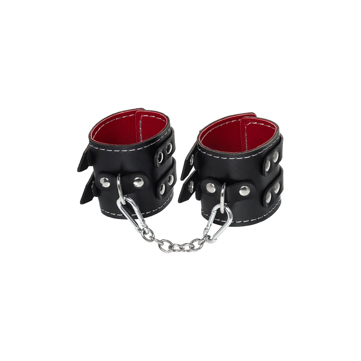 Эти кожаные наручники с двумя ремнями и красной подкладкой могут стать стильным аксессуаром, а могут послужить вашим целям по своему прямому назначению. Частичное обездвиживание и невозможность двигать руками дают вам полную власть над партнером – взрослые игры для взрослых. Наличие двух колец и карабинов, соединенных между собой металлической цепочкой, позволяет использовать изделие как раздельно – аксессуар-манжеты, так и как наручники для фиксации. К широким металлическим кольцам также можно присоединить и другие аксессуары при помощи карабинов. Благодаря универсальному размеру наручники могут использоваться и мужчинами, и женщинами. Размер легко регулируется с помощью металлических пряжек, органично вписывающихся в общий стиль. Длина манжет - 20 см, ширина - 7 см. Длина сцепки - 13 см.