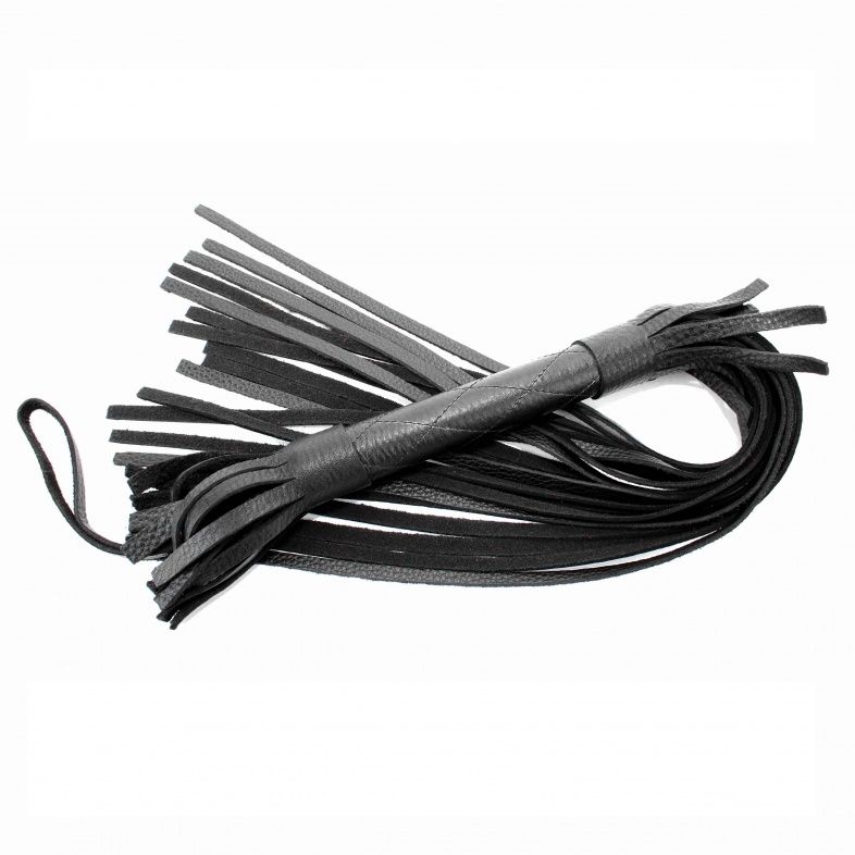 Аккуратная черная плетка, изготовленная из натуральной кожи. Имеет жесткую ручку , также покрытую кожей. Имеется петля для удобного использования плети. Длина хлыстов - 42 см. Длина ручки - 16 см.
