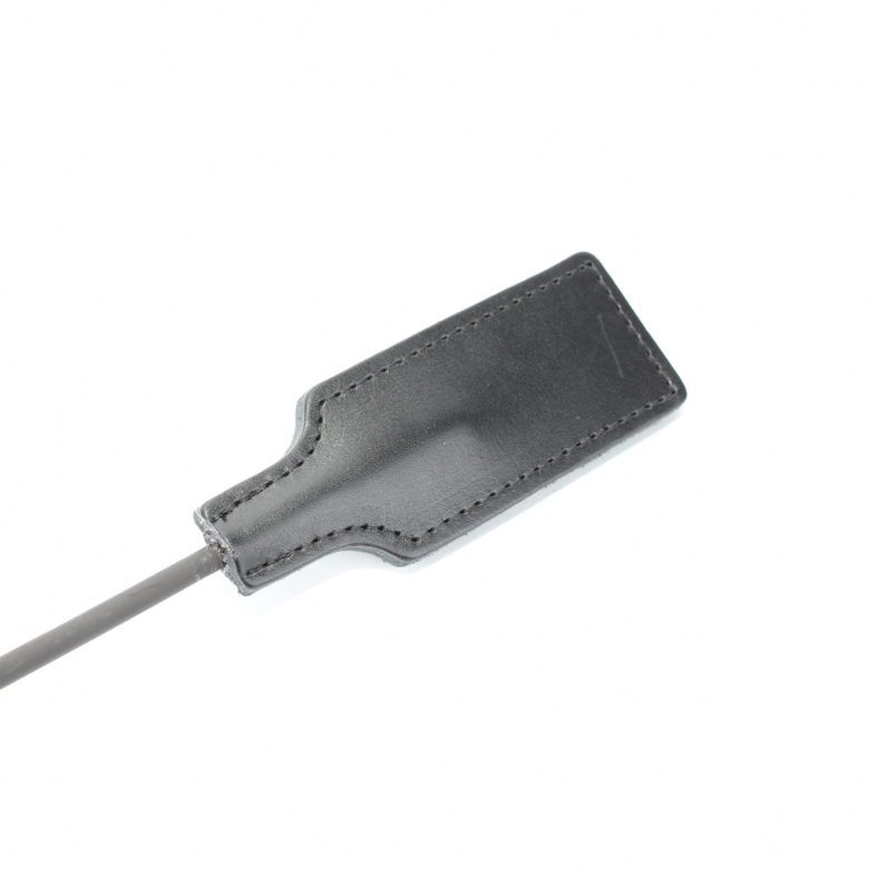 Стек сделан из прочного сердечника с оплеткой из кожи. Наконечник в виде хлопушки из кожи для осуществления ударов. Также на ручке присутствует кожаная петля, которая позволяет закрепить стек при проведении наказания партнёра. Девайс отлично подходит для БДСМ игр. Мягкая и гибкая конструкция позволяет избежать повреждений тела даже при сильных ударах. Хлопушка сделана из подшитой кожи, рукоятка стека жёсткая, обшита кожей. Размеры хлопушки - 11 х 4 см.