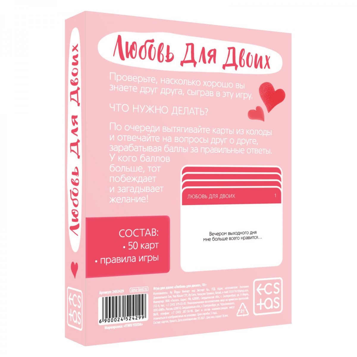В секс-шопе Orgasmix вы можете купить Игра романтическая Любовь для двоих артикул 120545 по цене руб. с доставкой в город Долгопрудный. Мы осуществляем доставку по всей России. Ближайшая дата отправки этого товара . Заказы принимаются круглосуточно через интернет-магазин.