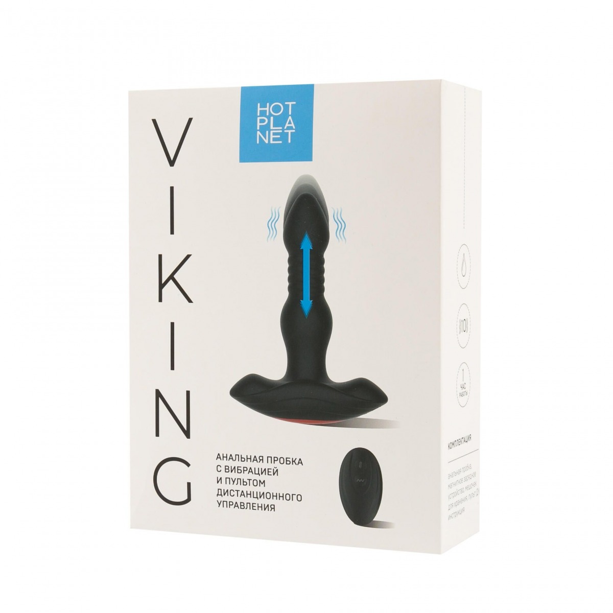 Hot Planet Viking — анальная пробка с функциями вибрации и фрикций (возвратно-поступательных движений). 10 режимов вибрации и 3 режима возвратно-поступательных движений управляются разными кнопками независимо друг от друга. Для управления можно использовать как кнопки на корпусе игрушки, так и пульт ДУ. Чтобы включить любой из режимов, нажмите на соответствующую кнопку и удерживайте её до появления световой индикации. Кнопка со стрелками отвечает за управление режимом фрикций, а кнопка с волной — за вибрацию. Когда пробка включена, вы можете переключать режимы её работы по кругу, коротко нажимая на кнопки. Т.к. режимы включаются и управляются полностью независимо друг от друга, вы можете комбинировать их по своему вкусу, или наслаждаться чем-то одним. Для выключения пробки нажмите и удерживайте кнопки так же, как при включении. Чтобы управлять режимами работы игрушки с пульта ДУ, сначала включите пробку с помощью кнопок на её корпусе, а затем управляйте режимами, коротко нажимая кнопки на пульте управления. Для выключения какого-либо режима работы пробки, нажмите и удерживайте соответствующую кнопку на пульте. Чтобы полностью выключить пробку после использования, воспользуйтесь кнопками на её корпусе, иначе она останется в режиме ожидания.