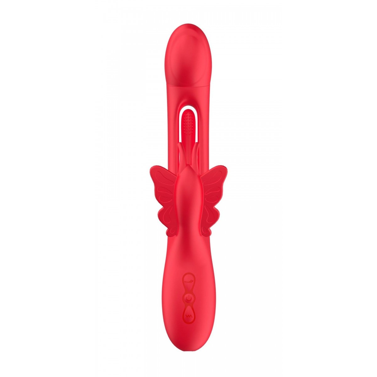 Эргономичный вагинально-клиторальный вибратор в виде бабочки подарит незабываемые ощущения благодаря продуманной функциональности и стильному дизайну. Вагинальная часть имеет 7 режимов вибрации, включается средней кнопкой коротким нажатием. Фингеринг осуществляется благодаря встроенному в вагинальную часть лепестку, также имеет 7 режимов и включается верхней кнопкой на панели управления. Клиторальная часть тоже имеет 7 режимов вибрации, включается нижней кнопкой. Все три функции могут работать как по отдельности, так и одновременно, адаптируясь под желания пользователя. Вибратор изготовлен из силикона, водонепроницаем и перезаряжается от магнитной зарядки. Время зарядки — 120 минут, время работы — до 60 минут.