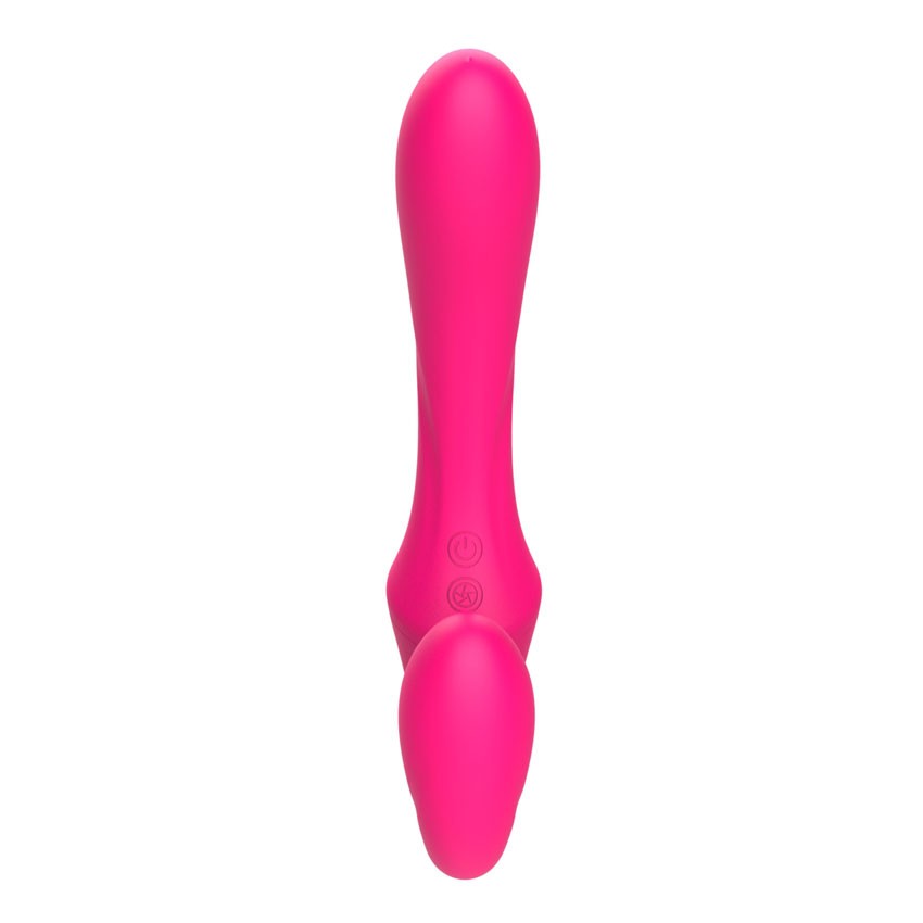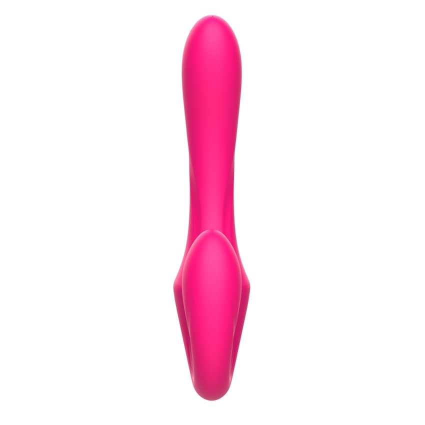 Розовый вибратор с клиторальным отростком и пультом ДУ. 7 режимов вибрации. Рабочая длина - 11,3 см.
